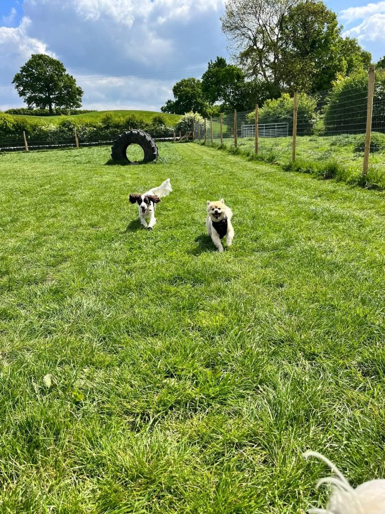 Plum Tree Barks is a secure dog field set on our family farm in the village of Betley, Crewe. Surrounded by open countryside and cared for by Charlotte and her husband Howard, it’s the perfect place for your dogs to run free, explore, and enjoy nature. From spring lambs to summer sunflowers, there’s always something to enjoy. We’re a friendly bunch, so if you see us around — don’t forget to wave!